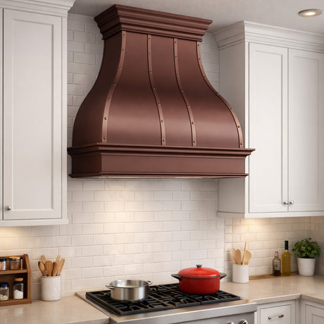 USA Arched Custom Copper Kitchen Hoods with Elegant Apron URHC-27