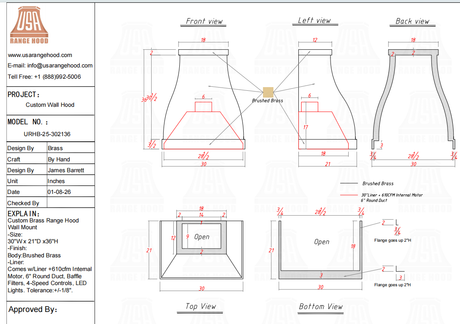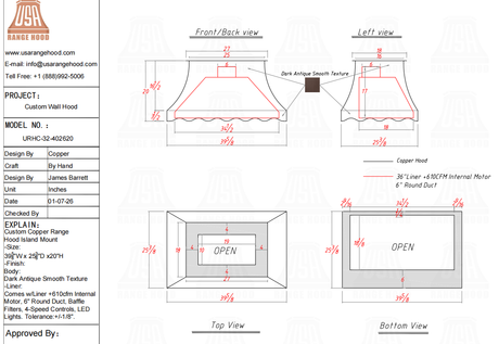 URH Custom Range Hood-URHB-25 Custom Link for Hannah