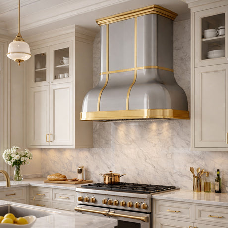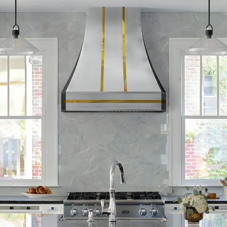 USA Bell Stainless Steel Range Hood with Polished Brass Accents URHS-101
