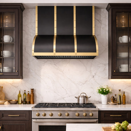 USA Bell Custom Kitchen Hood Stainless Steel with Brass Straps URHS-38