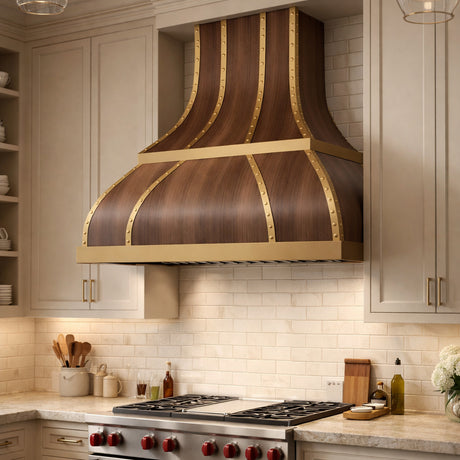 USA Luxury Copper Stove Hood Featuring Bronze Copper Straps URHC-71