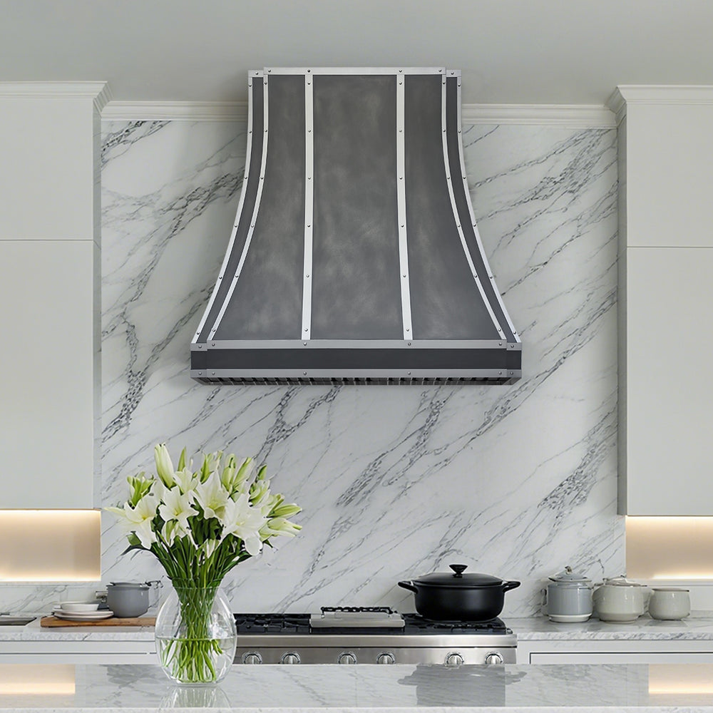 USA Custom Zinc Range Hood with Silver Straps URHZ-05