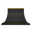 The USA artisan stainless steel vent hood URHS-09 introduces a refined modern presence to your kitchen. The designer kitchen exhaust hood's deep charcoal exterior, accented with warm golden straps, is meticulously crafted from premium stainless steel with gentle curves suited to both classic and modern decors.Whether contrasting against light cabinetry or complementing metallic accents, this custom handcrafted hood makes a striking yet harmonious statement.Fully customized in size, finish, strap design, and hardware, this metal range hood combines powerful performance with elegant design—seamlessly integrating into your kitchen while expressing distinctive style.