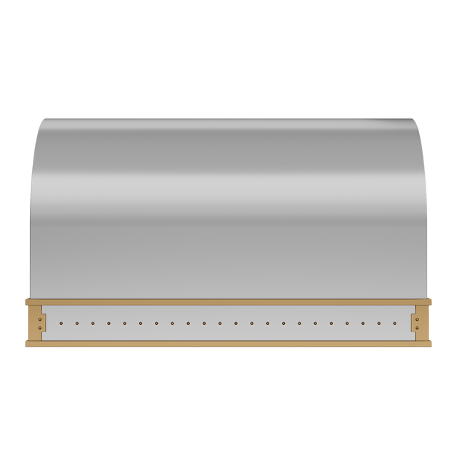 Where minimalism meets precision, the USA custom box range hood rises in a clean, box-shaped form of stainless steel, its streamlined silhouette reflecting the cool sophistication of modern loft living. A ring of golden metal and a row of rivets at the base punctuate the surface, turning this designer Kitchen hood  URHS-52 into a statement of subtle artistry and technological refinement. Each metal vent hood delivers quiet yet powerful ventilation, marrying functionality with aesthetic clarity, while showcasing the resilience and low-maintenance virtues of stainless steel. The custom exhaust hood integrates seamlessly into urban minimalist, avant-garde, or loft-style kitchens, harmonizing effortlessly with ceramic cookware, matte stoneware utensils, or polished concrete countertops. Every modern range hood embodies thoughtful design, modern elegance, and precise craftsmanship, transforming the kitchen into a space where efficiency, style, and innovation coexist.