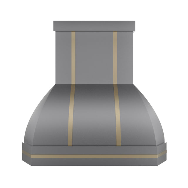 Envision USA URHS-26 gray artisan vent hood, its soft curves catching the light as warm brass straps trace elegant lines across its surface. This handcrafted kitchen hood transforms any cooking space into a sanctuary of style and function, offering powerful, quiet ventilation that clears smoke and aromas effortlessly. A metal vent hood for modern, transitional, or classic kitchens, this modern range hood harmonizes with marble islands, wooden cabinetry, and sleek countertops alike. Every rivet, strap, and finish can be tailored, allowing your Personalized Kitchen Hood to become a statement of both craftsmanship and imagination. Explore with USA Range Hood today to bring your dream vent hood to life.