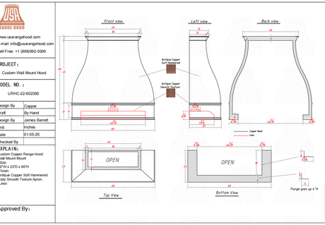USA Artisan Custom Copper Kitchen Exhaust Hood URHC-02