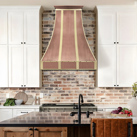 USA Classic Copper Kitchen Exhaust Hoods with Brass Accents URHC-18