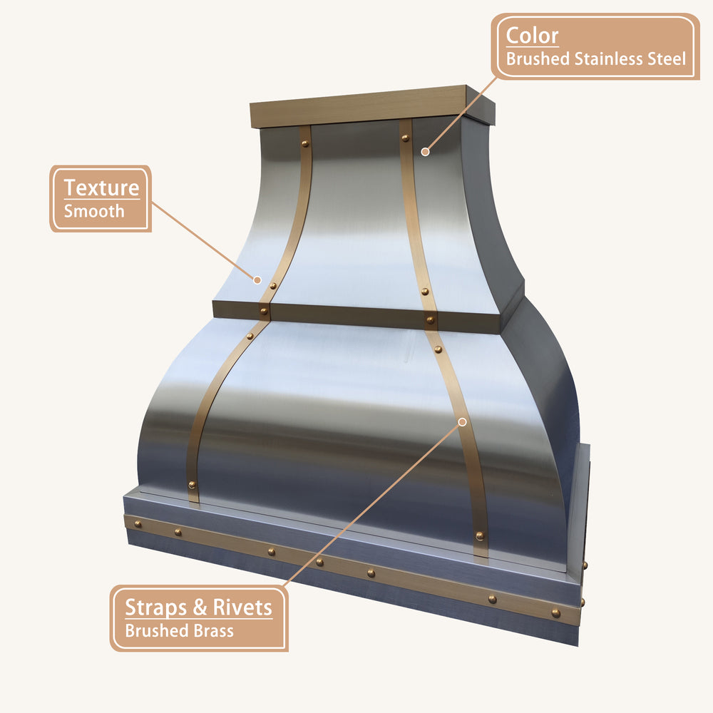 USA Bell Stainless Steel Range Hood with Brass Accents URHS-77